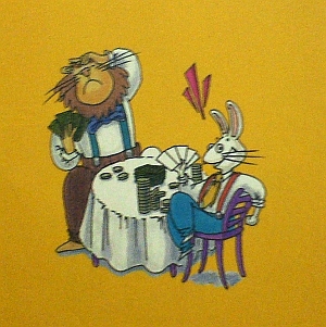 余裕をかますウサギと、困った感じのライオン。どうやらカードゲームをしているらしい。